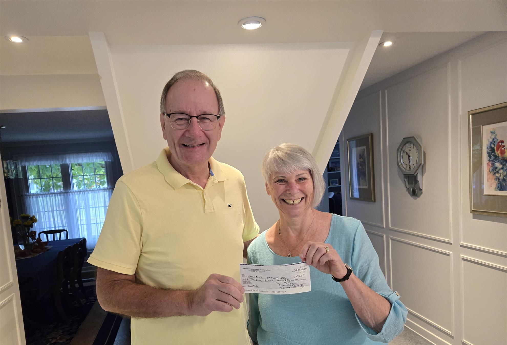 Jean Holbert-Leighton, member of our club's Community Services Committee presented $2,000 to Elizabeth Dekker of the Childrens' Aid Society.