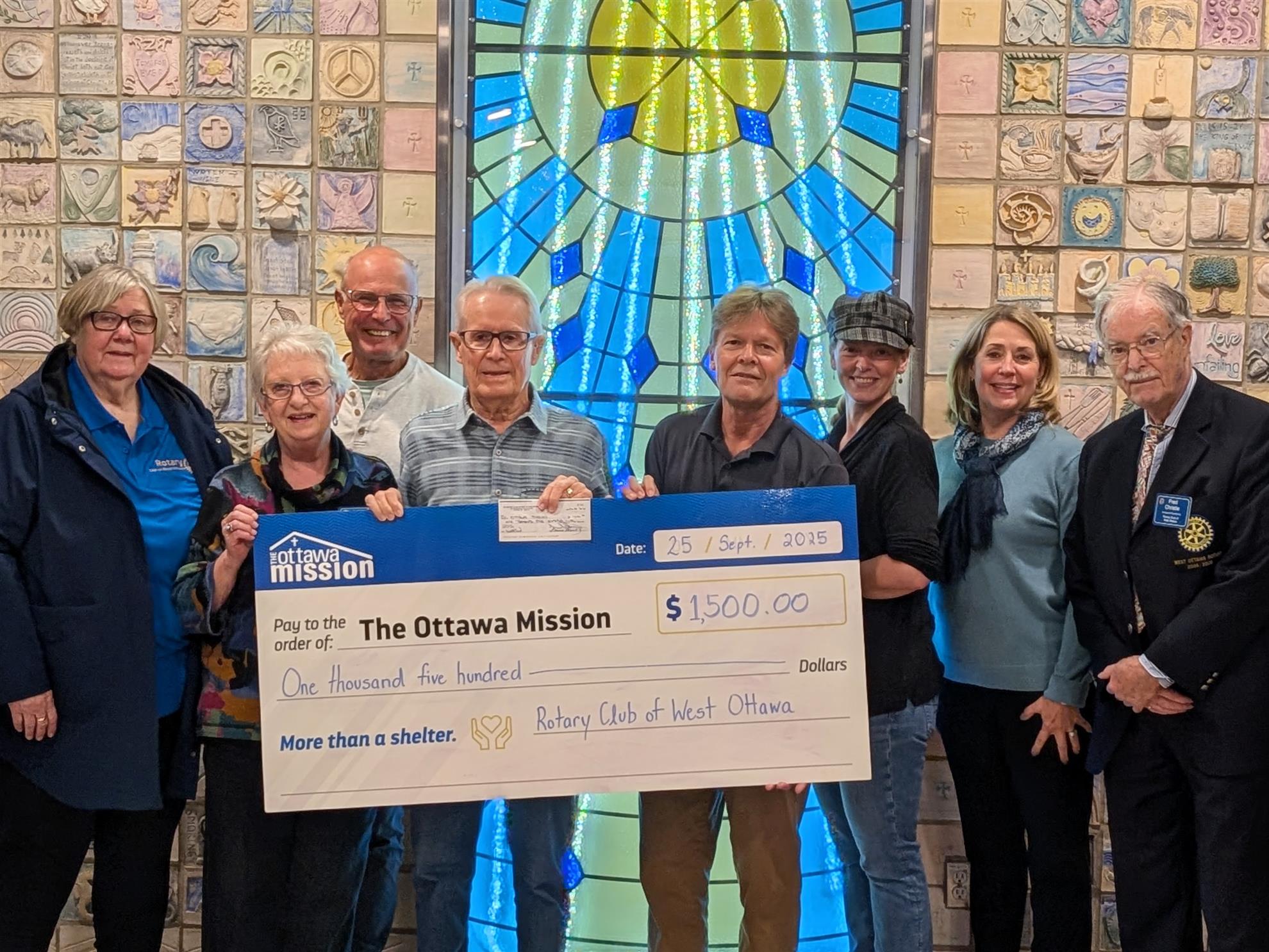 September 29, 2025: On September 25, RCWO members visited The Ottawa Mission, with thanks to organizer Ron Doll. Jean Begin, Fred Christie, Ron Doll, Jean Holbert-Leighton, Jake Maarse, and Erin Ueffing joined the tour, which included the dining hall, kitchen, shelter, and laundry facilities. We heard about a tremendously successful training program - a four-month commercial kitchen program - with a 95% hiring rate post-completion. Members also purchased an excellent lunch from The Mission's catering service, Chef Ric’s, and a $1,500 donation was presented to CEO Peter Tilley.