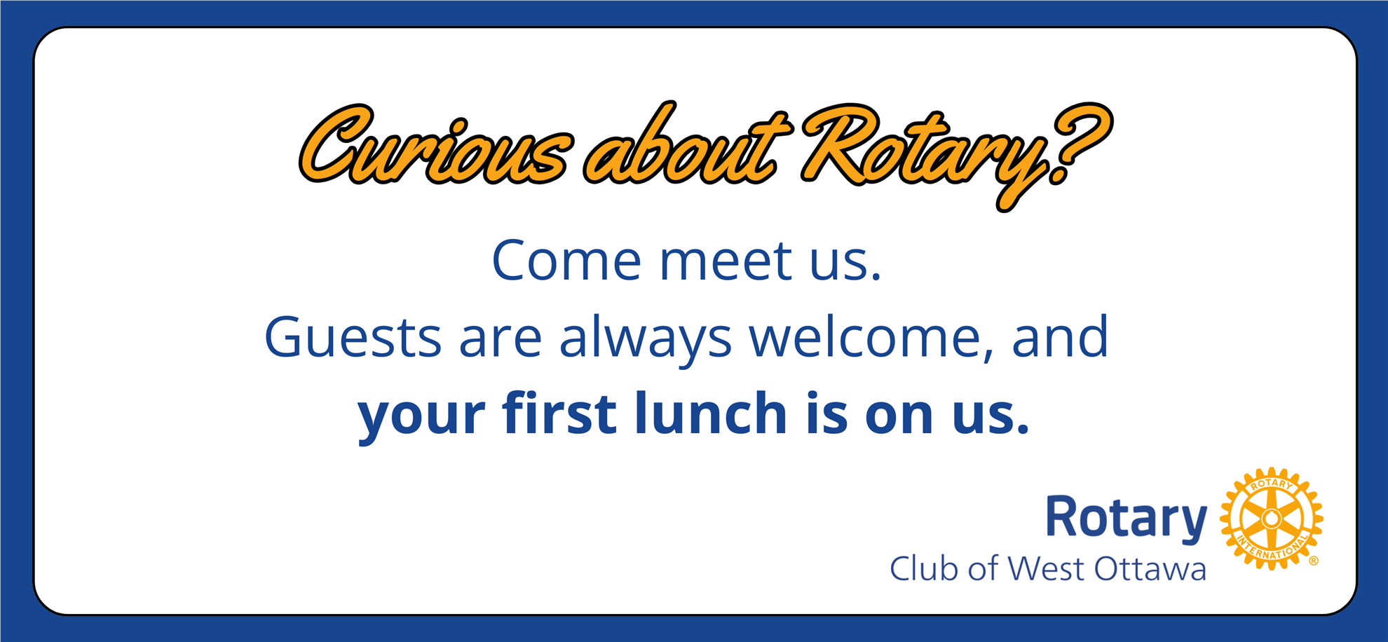 Your application is reviewed and approved by our Membership Committee and Board. After approval, you’ll be notified and, when convenient, inducted at a meeting at which the members can “officially” welcome you to Rotary and the Rotary Club of West Ottawa!